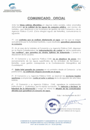 COMUNICADO OFICIAL GARANTIA DE CONSUMO DE AGUA